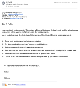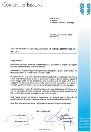 Un primo feedback dal Municipio di Bissone, 9 maggio 2023